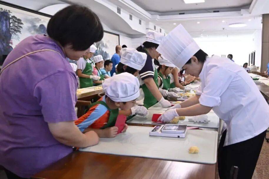 活动现场,专业面点大师现场示范揉面、调馅、塑形、烘焙全过程,孩子们在家长的陪伴下戴上小围裙、拿起擀面杖变身“小小面点师”,随着阵阵香气逐渐弥漫开来,金黄酥脆的椰蓉酥、造型精巧的甘露酥新鲜出炉,成就感在孩子稚嫩的脸庞写满。